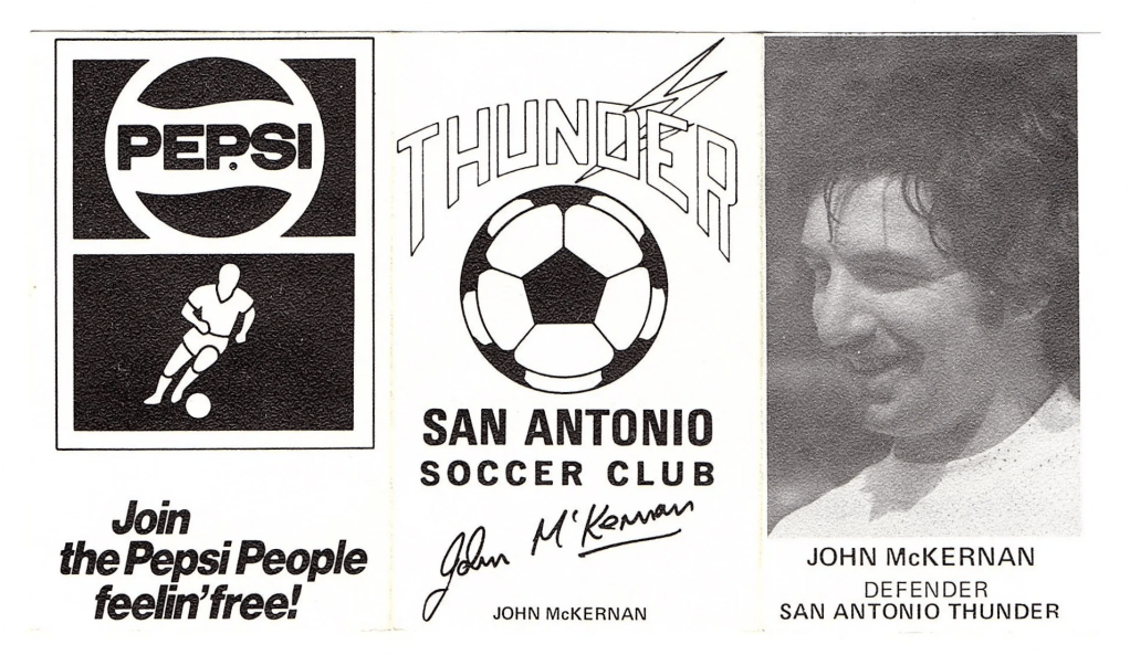 The impetus for this project flows from an email I recently received from Stewart McKernan, the brother of the 1975 Thunder team captain, John McKernan. From his home in Scotland, Stewart read an article I wrote about the Thunder when San Antonio FC held a 2018 throwback charity auction for game worn Thunder jerseys. He sent a handful of pictures from his brother’s possessions and shared details about John’s background and his time in San Antonio. Unfortunately, John McKernan, who moved to Sacramento and established roots there shortly after his time in San Antonio ended, passed away at 45 years old in 1997 after a three-year battle with cancer.