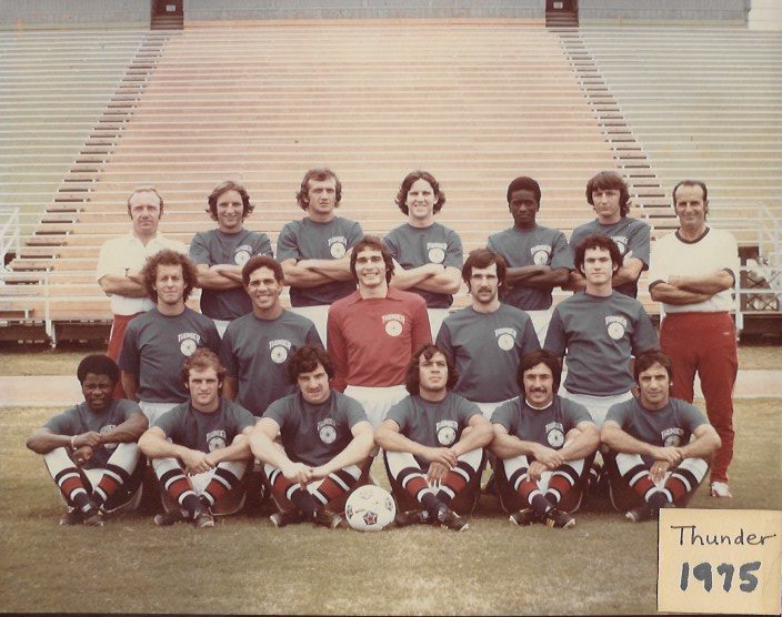 After Perolli joined the club, he set off on a wide-ranging tour of Europe and Latin America to build the inaugural season roster. It wasn’t until well into preseason training that the club was able to assemble a team ready to begin a preseason match schedule. GM Mike Boyle faced difficult challenges in organizing this schedule which ended up being put together on a week-by-week basis as March and April of 1975 unfolded. These activities led up to the first match in the Thunder’s history against the Dallas Tornado, 45 years ago this week.
